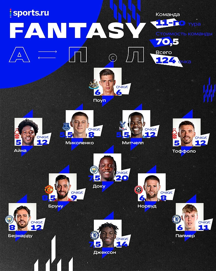 Лучшие в 11-м туре АПЛ для фэнтези на Sports.ru.
