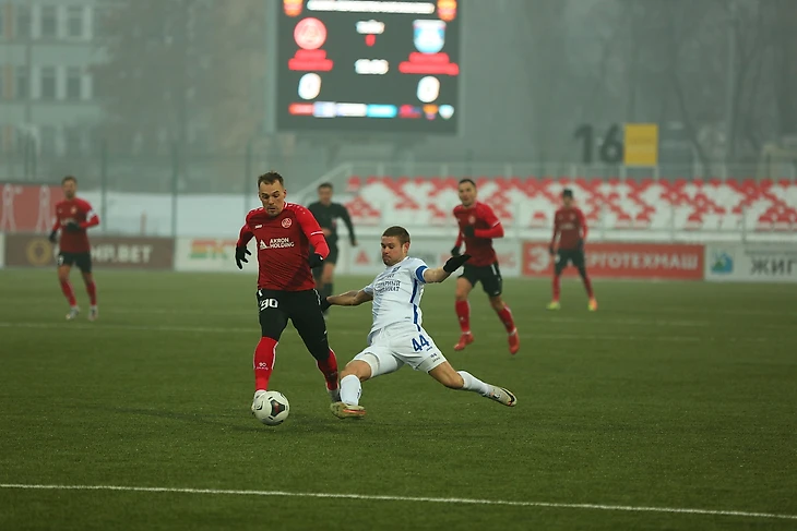 43 мин. Дудиев выиграл единоборство у защитника и идеально выкатил мяч под удар Марковичу. Мирослав не промахнулся – ведём 1-0.