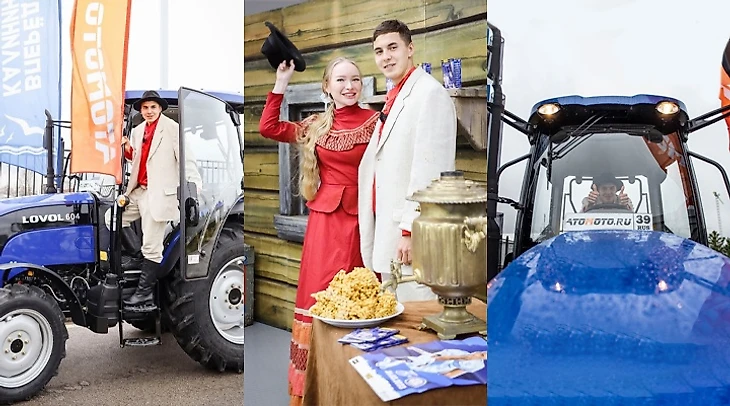 У входа в раздевалку с красивейшей улыбкой гостей встреча жена Малярова, одетая в национальный костюм, а позже к ней прибежал и сам Кирилл, который припарковал трактор аккурат возле автобуса гостей. Встречали челнинцев Маляровы с чак-чаком.