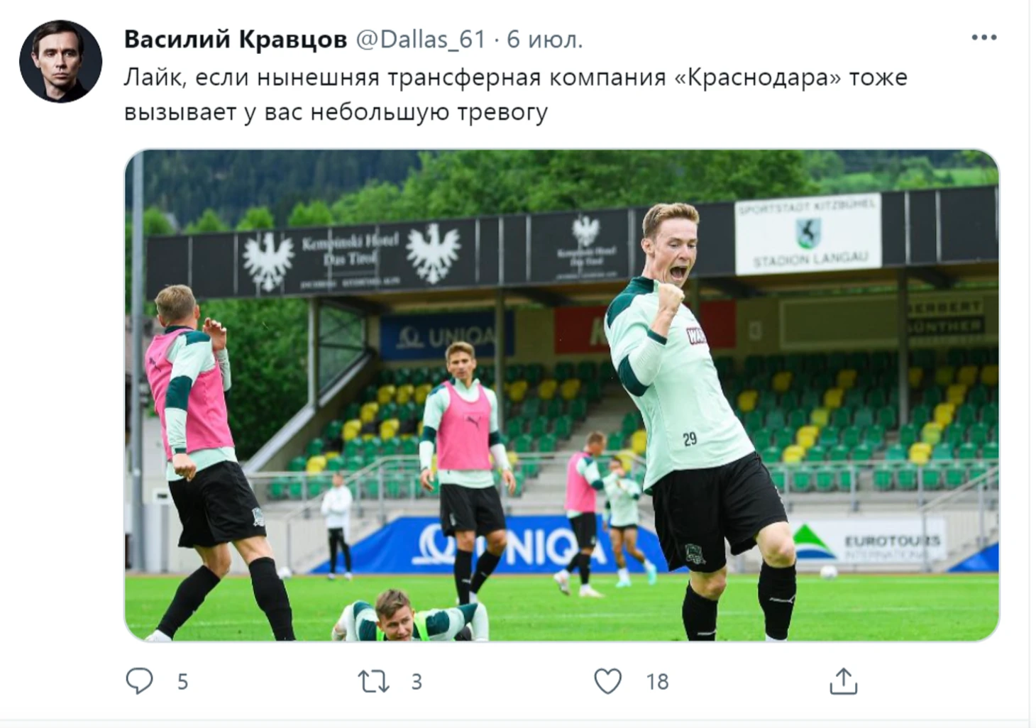 Как-то за страстями перенесенного Евро в целом и многострадальной и неуемной сборной России в частности любители «Краснодара» упустили, надеюсь, тот факт, что побеждали незадачливые наши последний раз ещё весной. Боевая ничья с «Легией, конфуз из-за дождя с греками, нелепое, из-за целой группы срезок поражение «Шепши» и очень унылые 0:0 с середняком второй Бундеслиги. Да, можно сказать, что товарняки вообще ничего не решают, что Стерлинг негодяй, а ВМГ привычнее работать в стесненных условиях (может так лучше раскрывается его талант?), но объективно пока впечатление. Смешанное.