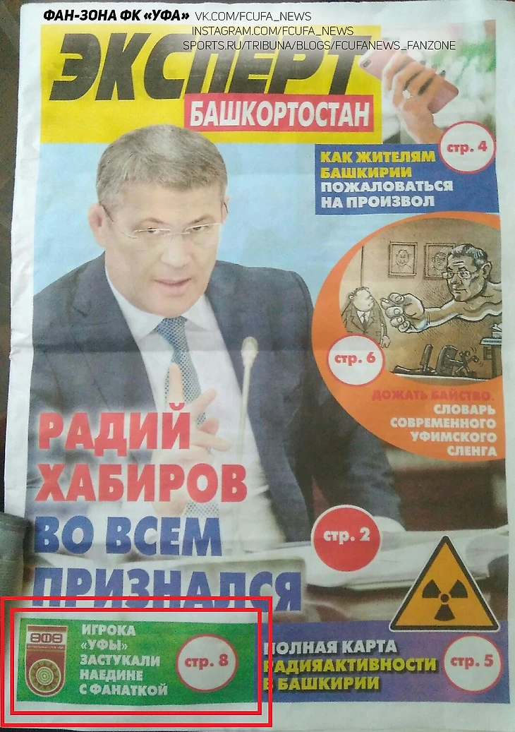 Что за бред? Дело в том, что этот выпуск был сделан в качестве рекламно-информационно-агитационного материала временно исполняющего обязанности Главы Республики Башкортостан Радия Хабирова и распространялся бесплатно перед выборами 8 сентября. И вот, по-видимому, чтобы избиратели не сразу выбрасывали его из своих почтовых ящиков в мусоропроводы, а хотя бы по диагонали просмотрели, авторы решили хоть как-то привлечь их внимание "желтым заголовком"