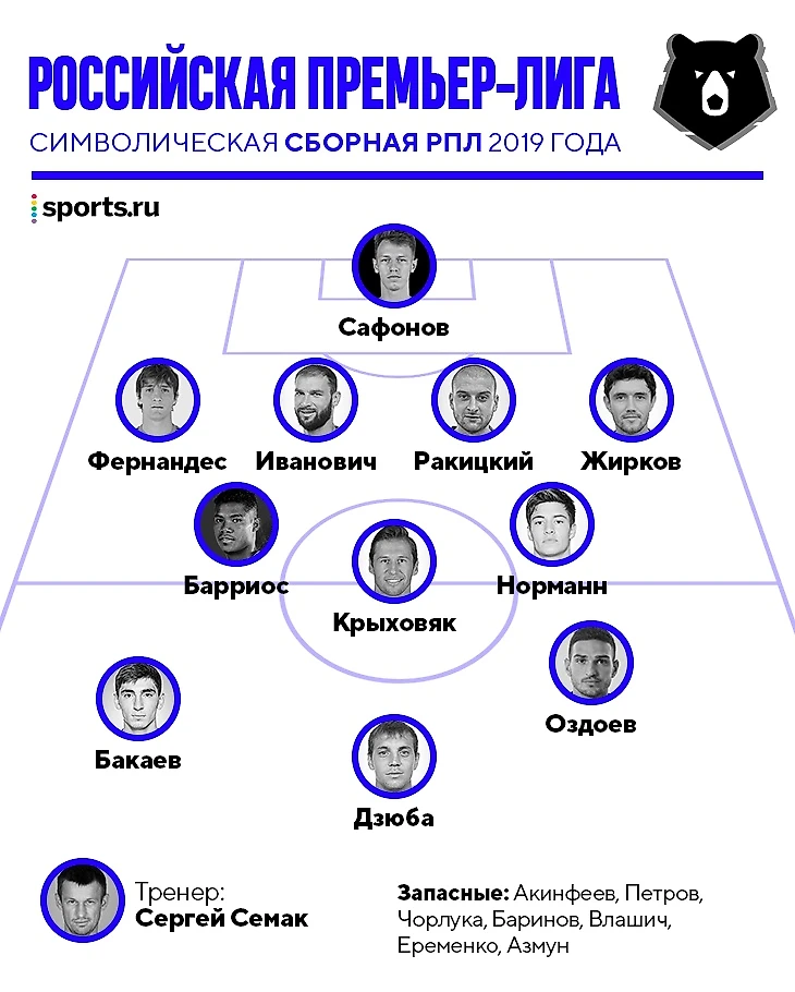 Выбрали сборную РПЛ в 2019-м: Дзюба, Бакаев, Крыховяк, Сафонов, Барриос, Ракицкий и даже игрок «Ростова»
