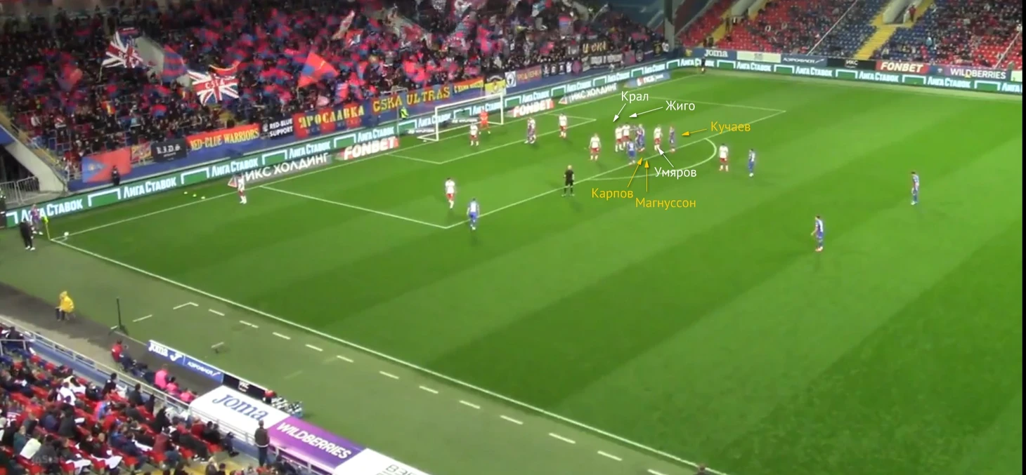 Результативный угловой стал для ЦСКА третьим в матче – два до него тоже подавались слева (но Влашичем, а не Обляковым). Дважды на границе штрафной возникала ситуация 3-в-3: Умяров играл по Кучаеву, а Крал и Жиго – по Карпову и Магнуссону. При этом оба раза Магнуссон прятался за спину Карпову, ожидая блока.