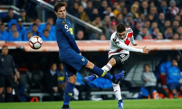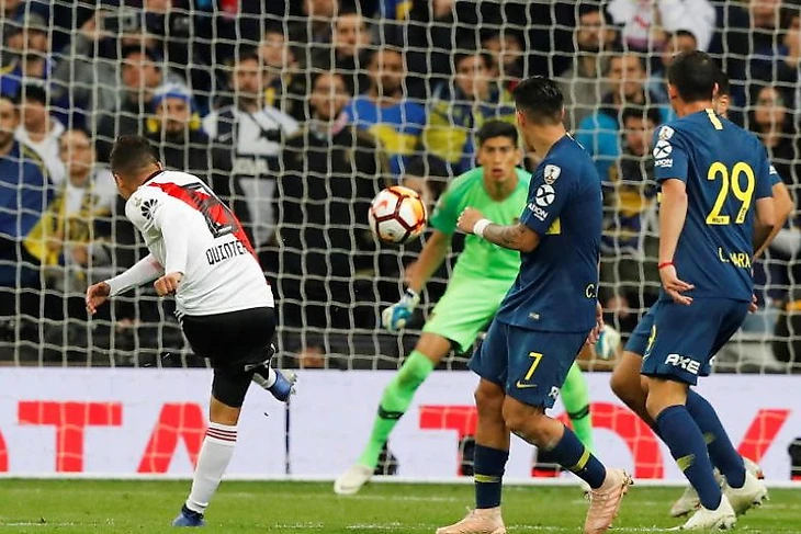 На противоположной стороне «Бока» выстроила свои 4-5-1, но даже если она в итоге отдала владение, поджидая ошибку, которая внесла бы еще больше смуты в оборону «миллионеров», очевидно, что и это помогло матчу стать именно таким, каким он стал. Только энергичный и выверенный Наитан Нандес уравновешивал суетливость и волнение Барриоса и Пабло Переса – эти двое постоянно теряли свое место на поле, даже не замечая угрозы у себя за спиной. А угроза возникала стремительно, да, но и пропадала мгновенно: казалось, воспользоваться этим пространством на флангах, слева и справа от Вильмара – что-то совершенно революционное. Ни Пити, ни Эсекьель, ни Энцо не осмеливались отойти от стартовой позиции, дать мячу выбор и создать вокруг себя спокойствие. Распасовщик, кто бы им ни оказывался, выглядел так, будто у него ноги колесом. И все же гол пришел. Гол, который перевернул финал - и заставил вмешаться в ход событий.