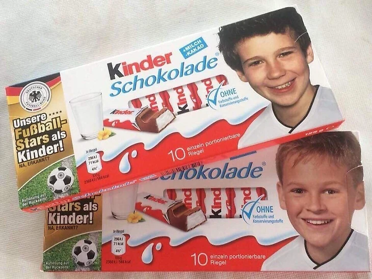 Шоколад Kinder с детскими фотографиями Леона Горетцки и Йозуа Киммиха