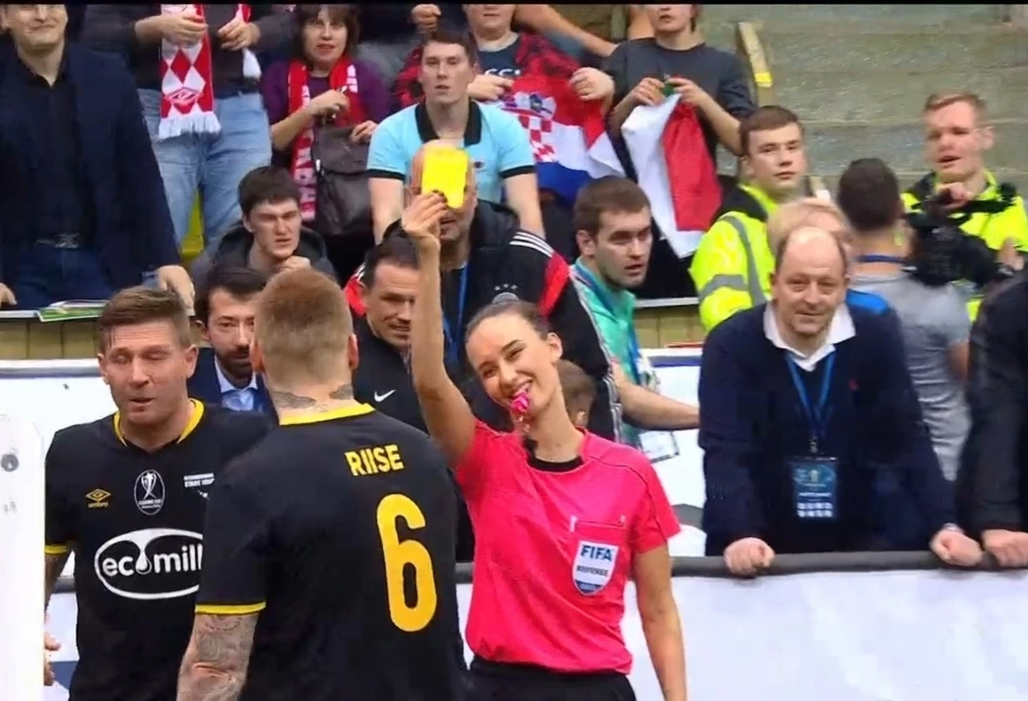 В финале самое интересное началось при счете 4:4 за 5 минут до конца: Бенаюна толкнули, он возмутился и что-то сказал главному арбитру Александре Пономаревой – она сразу показала израильскому футболисту красную.