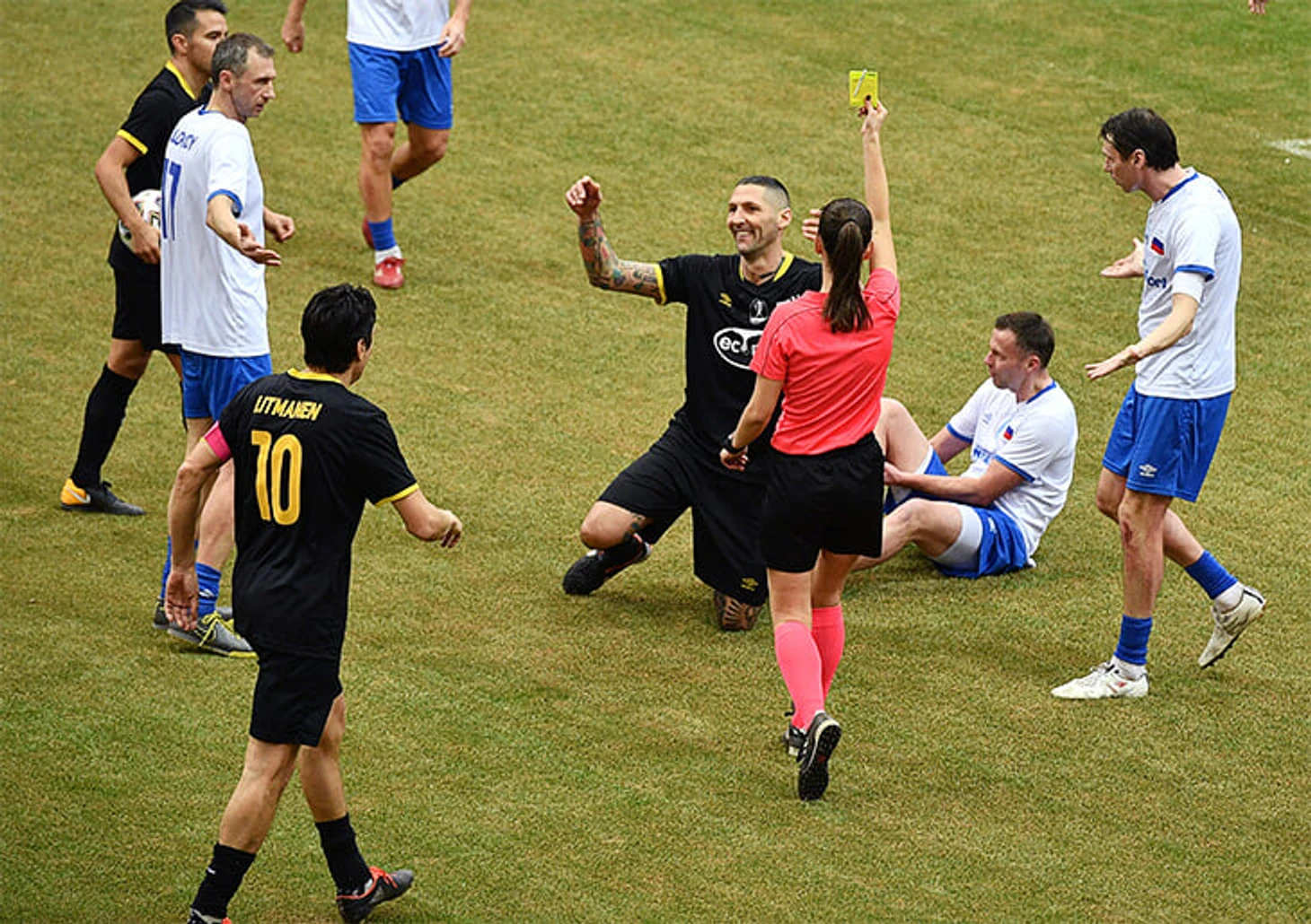 Еще через пару минут Матерацци снес Самедова у штрафной сборной звезд – Пономарева свистнула фол. Тут Йон-Арне Риисе вскипятился, что-то сказал ей и тоже получил красную. После этого норвежец махнул партнерам – и все-все звезды ушли в раздевалку. Остался только капитан Яри Литманен, который пытался договориться о продолжении матча.