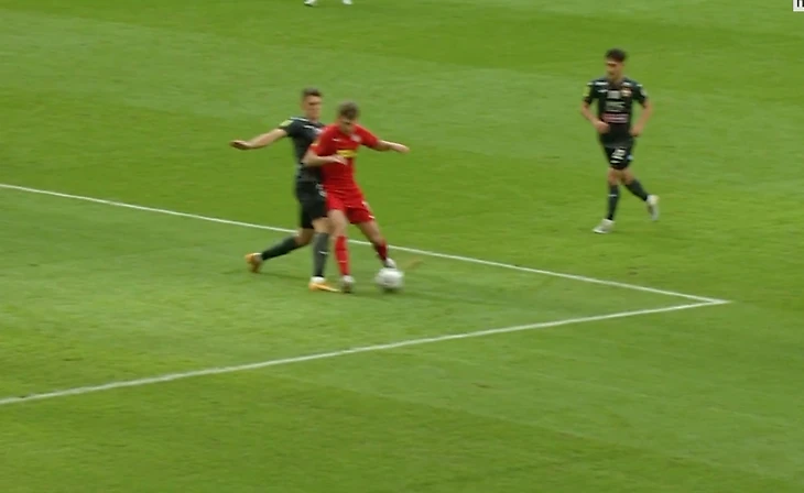 Судья по подсказке ВАР пересмотрел эпизод лично и назначил пенальти – Влашич забил.