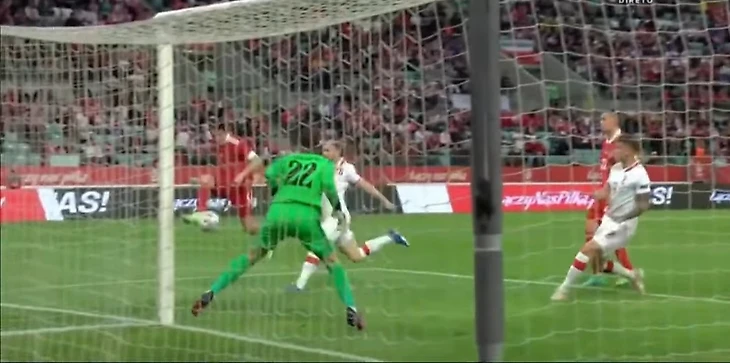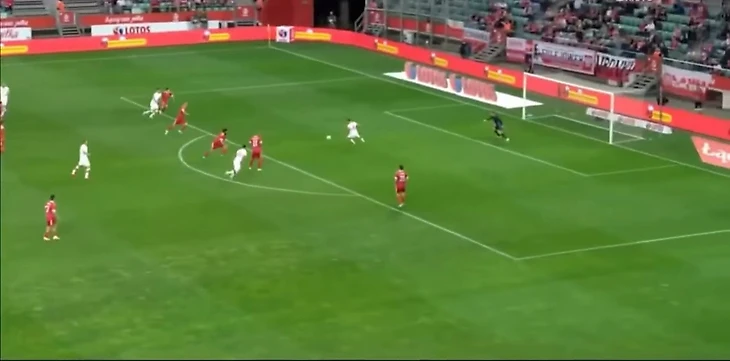 Дальше Франковски выкатил под удар Якубу Шверчоку из «Пяста» – 28-летний форвард пробил в ближний и так забил первый гол за сборную
