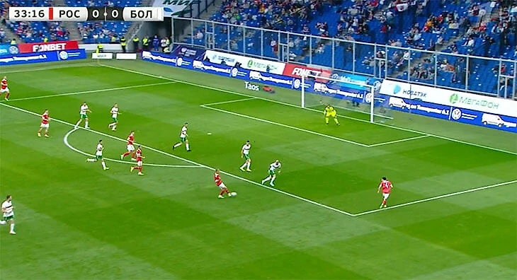 В первом тайме с Болгарией вы как раз видели частые врывания Баринова вперед – в том числе через передачи на Дзюбу под отыгрыш на третьего. На своей половине поля было гораздо хуже – особенно при верховых передачах соперника за спину.