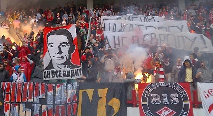 А вот гигантский баннер в чемпионском сезоне – когда «Спартак» играл с «Тереком».