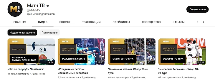 У «Матч ТВ» на ютубе 3,5 миллиона подписчиков, с сентября 2015-го, когда канал начал работу, у него суммарно 1,7 млрд просмотров на платформе.