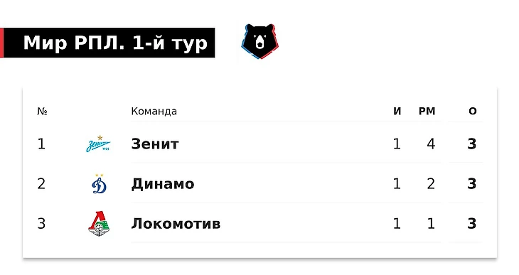 Тройка выигравших в первый день первого тура выглядит так.