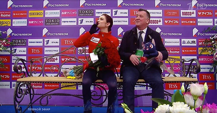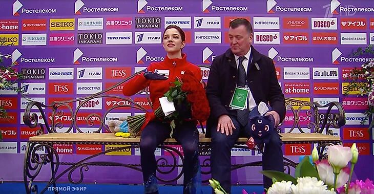 Медведева поблагодарила «Мегаспорт» и покинула КиК. Белл начала прокат в тишине.