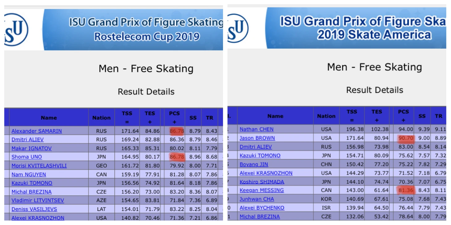 86.78 у Самарина и 90.70 у Брауна, всего лишь на 4 балла больше. У Брауна, который один из самых признанных катальщиков и фигуристов с лучшими реальным компонентами. При этом Самарин катал с ошибками, а Браун нет!