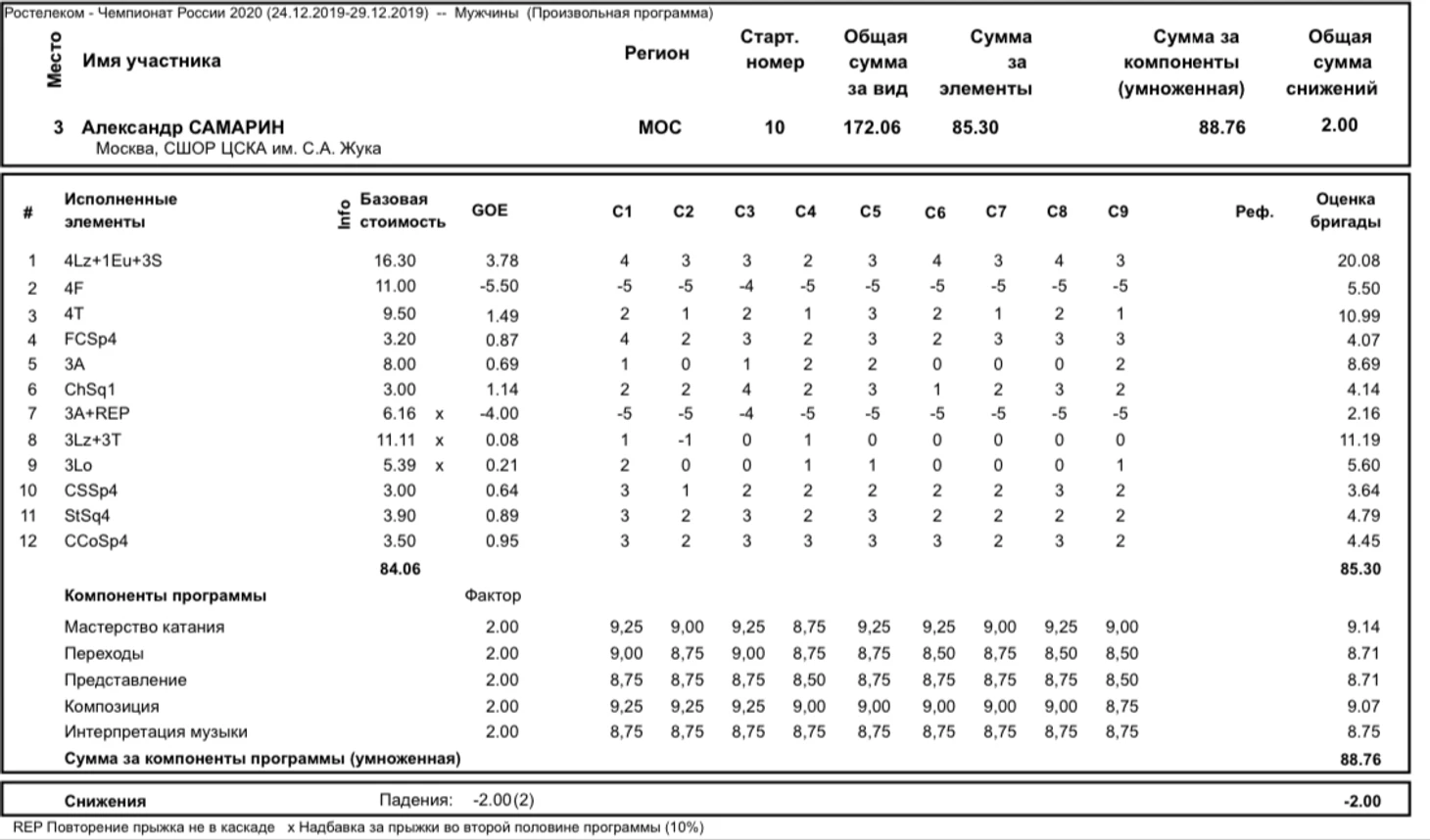 Все вышеперечисленное ещё без учёта огромных ГОЕ Самарина, и лояльное судейство недокрутов.