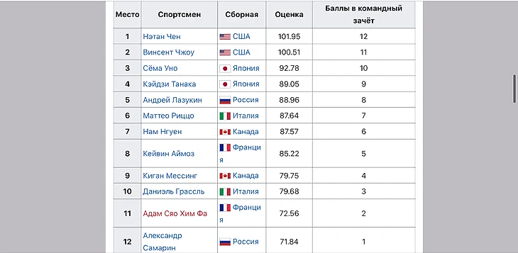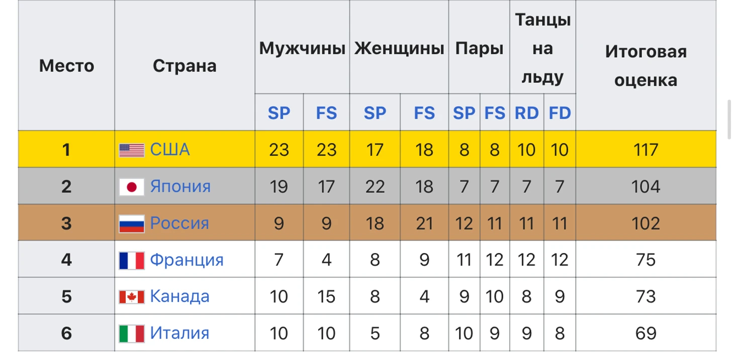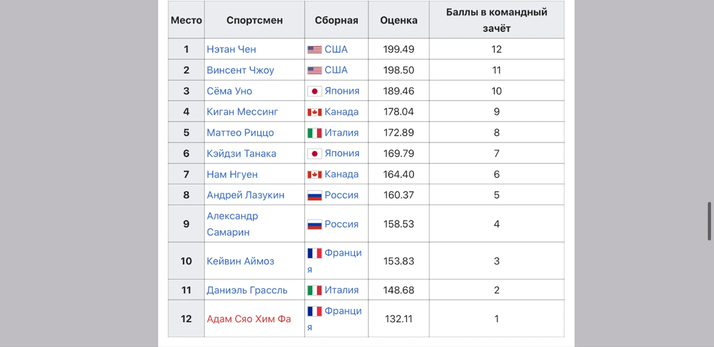 И это притом, что там система подсчета итогового результата зависит от занимаемого места каждым участником в каждой дисциплине, то есть : 1 место = 12 баллов, 12 место = 1 балл в командную копилку.