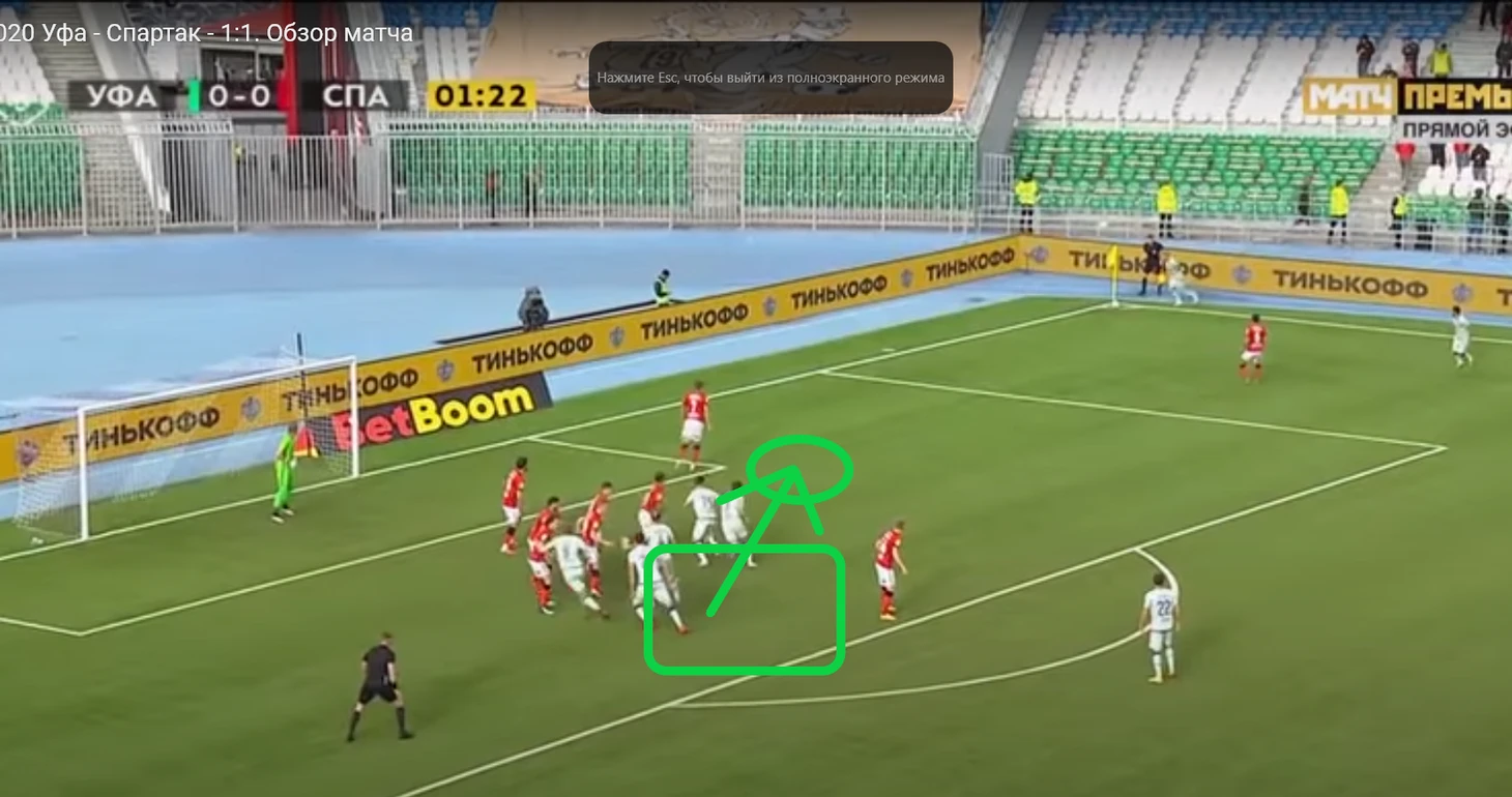 Хочется отметить, что в первом туре после подачи с фланга 47 номером на Соболева, последний забил свой первый мяч в первом туре в матче против сочинцев. Роман подает хорошо как с правой, так и с левой ноги. Поэтому, такую возможность игроку сборной России предоставлять нельзя. Подобное делает и Крал со смещением Романа за спину 8 номера красно-белых. Это явно наигранная на тренировках ситуация, которая приносит пользу в подобных игровых развитиях атаки.