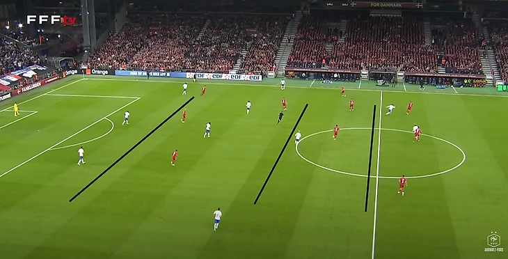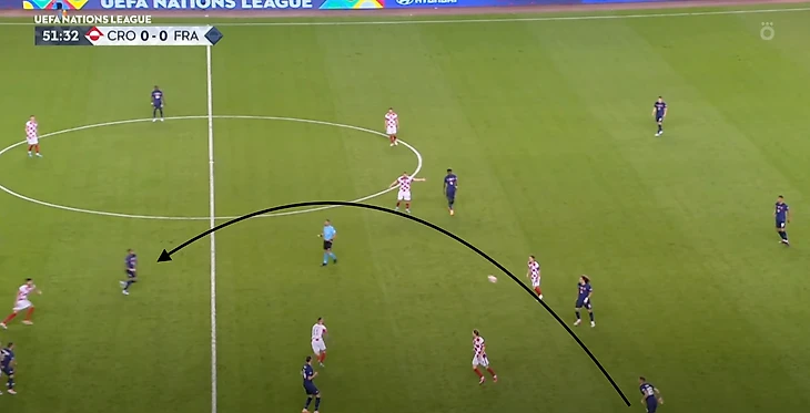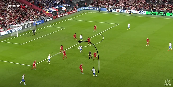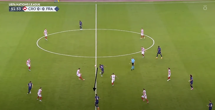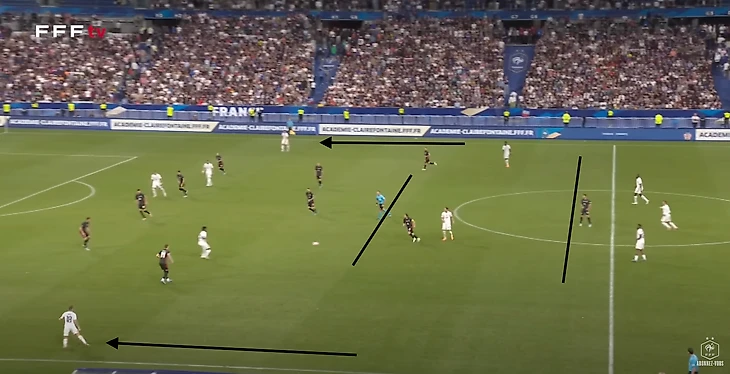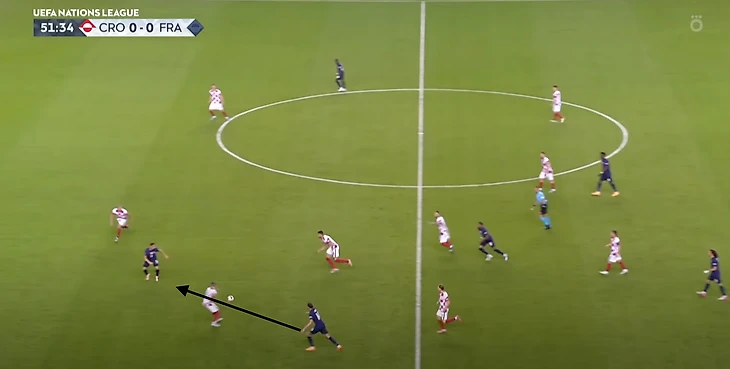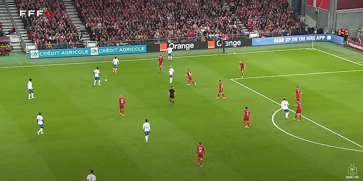 Во время позиционных атак французов часто можно наблюдать картину, когда все игроки стоят и ждут, что произойдет дальше. Можно увидеть даже небольшие комбинации, в которых, как правило, участвуют два-три футболиста.