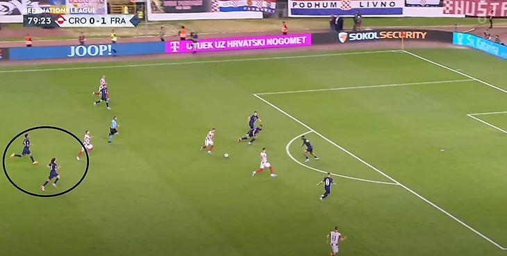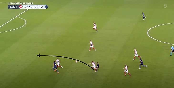 Обратите внимание, что Гендузи даже не приблизился. Дело в том, что он остановился, думая что хорват потеряет мяч.