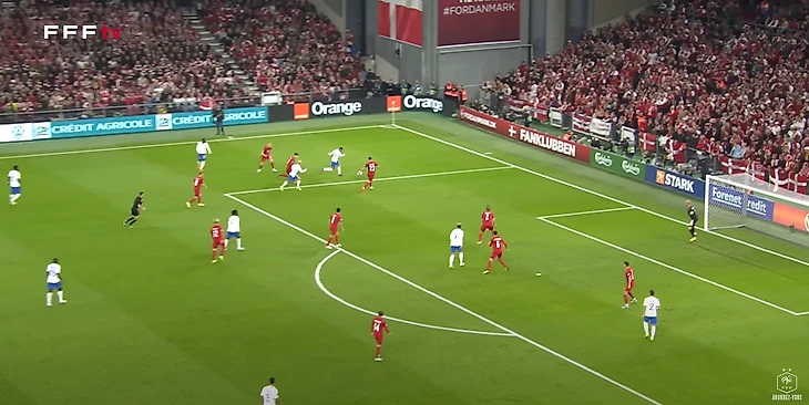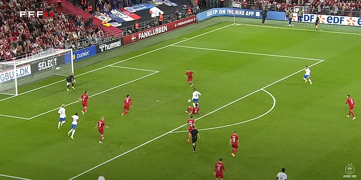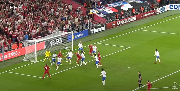 Эта ситуация повторялась в матче с Данией вновь и вновь. 10 игроков в штрафной площади против 5 соперников. 10! Логичного объяснения я найти не могу, тем более, что французы очень сильны в этом компоненте игры индивидуально.