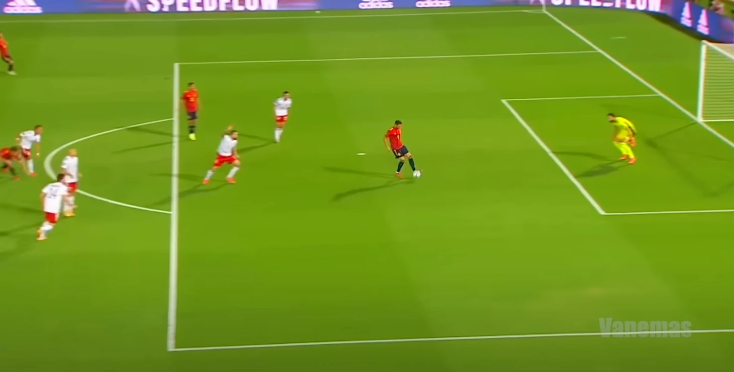 Педри вездесущ. Он покрывает огромную зону в центре поля, действуя как в обороне, так и в атаке. Помимо этого, юноша великолепен в части продвижения атак – он отлично видит поле и умеет обострять.