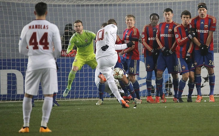 Но вот штрафной, 43 минута. Адем Ляич подходит к мячу, но Франческо по-отечески отводит его в сторону: «Я разберусь». Даниеле "Немейский Лев" Де Росси цапается в стенке с Цауней, Игорь кричит Васе Березуцкому, чтобы стенка не рассыпалась. Игнашевич караулит опасного Наингголана.