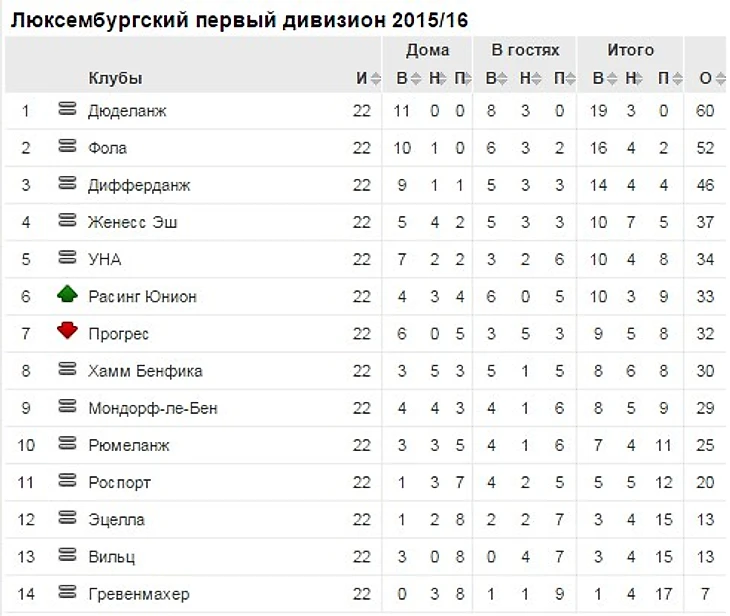 Что касается третьего места, то... Знаете, иногда мне кажется, что "Дифферданж" специально сливает чемпионат, чтобы не играть в Лиге Чемпионов, предпочтя её гораздо более привычную Лигу Европы. Так это или нет, но крайне нестабильна “команда железного города”. Однако, несмотря на свою нестабильность, "Дифферданж" с запасом идёт на третьем месте. Марк Томе продолжает свою работу с командой, и президент клуба Фабрицио Бей даёт понять, что будет удерживать тренера всеми силами.
