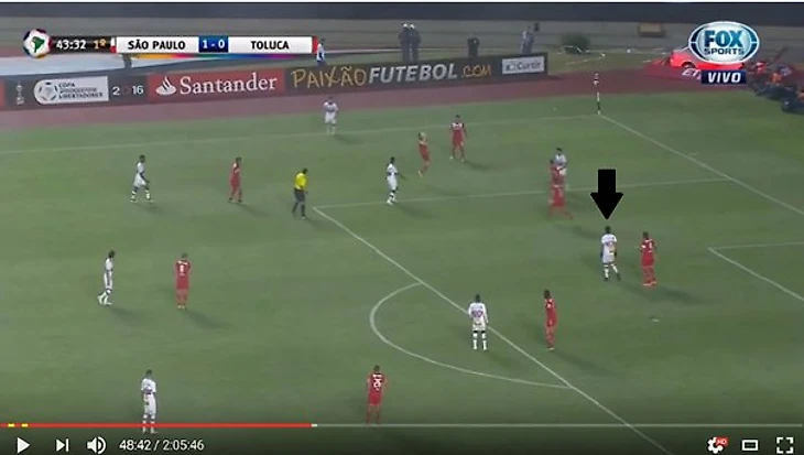 Гансо – один из любимейших игроков бразильской публики, «маэстро», как его называют на родине. Номинально он играет десятку, но при позиционной атаке играет важную роль глубинного плеймейкера. Разберем недавний матч Кубка Либертадорес с «Талукой».
