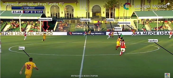 В расположение команды «Эль Мудо» прибыл только в день первого матча, поэтому и не участвовал в нем. Во втором матче компанию Васкесу в полузащите составили Краневиттер и Корреа. Вернемся к схеме полузащиты «Севильи» в том матче.