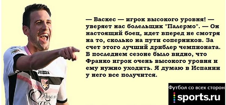 Статистически Франко Васкес - интереснейший игрок Серии А. За последние два сезона он дважды становился лучшим дриблером чемпионата и больше всех шел в борьбу с соперником, о чем свидетельствует его огромное количество нарушений и заработанных фолов. Авторитетный портал WhoScoredвключил итальянца в сборную лучших игроков Топ-5 лиг с ноября 2014 года, по ноябрь 2015, где компанию в полузащите ему составили такие известные игроки как Димитри Пайет и Хамес Родригез. Также хочется добавить, что Васкеса можно увидеть практически в каждой символической сборной Серии А на протяжении последних двух лет.