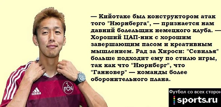 Везде где Кийотаке играл, он показывал красивую технику и заставлял стадионы аплодировать себе. В «Севильи» его ждет большая конкуренция, но японец уже заявил, что она ему не помешает, и он обязательно продолжит восхищать и испанскую публику.