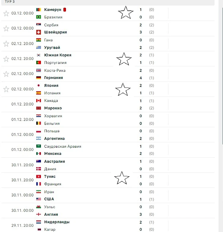 3 тур стал самым интересным на Чемпионате мира в Катаре во многом потому, что исходы вышли максимально необычными, во многом даже удивительные.