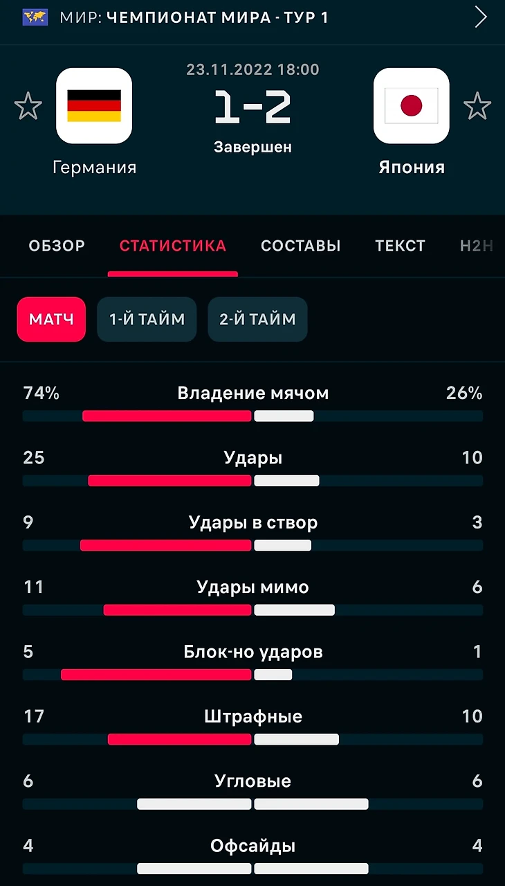 На самом деле здесь несколько факторов. Первый фактор — повышение интенсивности в ключевые моменты. Я, как фанат Реала, понимаю, что не нужно контролировать всю игру, чтобы побеждать. Для победы необходимо выиграть ключевые отрезки, как и делал Мадрид в прошлой Лиге чемпионов. Именно так и сделала Япония в первом туре. Германия была лучше по всем показателям, но в течение 15 минут получила от Японии несколько атак, две из которых стали решающими.