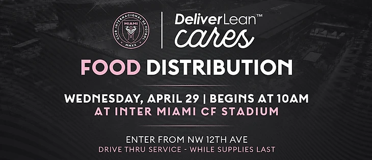 DeliverLean Cares будет собирать непортящиеся продукты питания из домов Южной Флориды для раздачи нуждающимся семьям. Любой человек в округе может заполнить форму на сайте www.deliverleancares.com, а сеть DeliverLean, насчитывающая более 400 водителей, в течение 24-х часов заберет непортящиеся предметы из домов отдельных лиц и распространит их в нескольких пунктах размещения в сообществе, включая Miami CF Stadium.