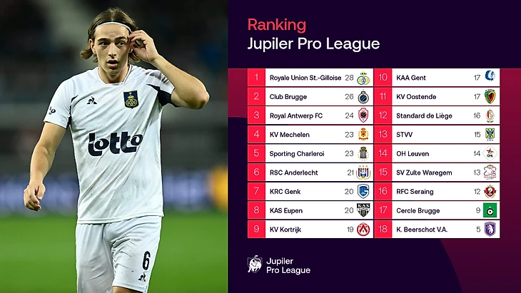 Турнирная таблица чемпионата Бельгии по итогам 13-го тура