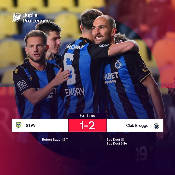 В «Брюгге» понимали, что в случае победы возглавят таблицу (пусть даже на пару дней), поэтому сразу прижали соперника и забили уже на 40-й секунде. Но на этом, разумеется, не успокоились – вот только «Сент-Трюйден» выдержал наступление, а в середине первого тайма огорошил «Брюгге» ответным голом. К счастью для гостей, вскоре после перерыва их снова вывел вперед Дост. Его второй гол оказался решающим. «Мы проиграли по делу, хоть и смогли навязать сопротивление», – считает полузащитник «Сент-Трюйдена» Стив де Риддер. Главный тренер «Брюгге» Филипп Клеман радуется: «Я очень доволен первым таймом, который был нашим лучшим в этом сезоне, но есть два минуса: мы должны были вести 3:0 или 4:0 к перерыву, но этого не сделали, а потом еще и пропустили. Во втором тайме мне показалось, что мы слишком пеклись о сохранении победного счета вместо того, чтобы продолжать играть в атакующий футбол, но в целом – все хорошо».