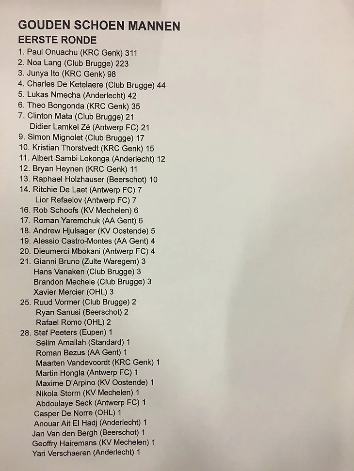 В мае нападающего «Генка» Пола Онуачу признали лучшим игроком чемпионата Бельгии прошлого сезона за 33+5 в 38 матчах. Нигериец тогда стал лучшим бомбардиром турнира – и первым игроком за почти 20 лет, забившим три десятка голов в Про-Лиге. А сейчас он снова в топе голеадоров, хоть пока и лишь на четвертом месте. Всего в 2021 году он забил 34 гола. За все это Онуачу вознаградили «Золотой бутсой». Он – третий лауреат в истории «Генка» после Бранко Струпара (1998) и Уэсли Сонка (2001). Примечательно, что при росте 201 см Пол – не самый высокий обладатель премии, потому что в 2000 году ее выиграл 202-сантиметровый нападающий «Локерена» Ян Коллер.