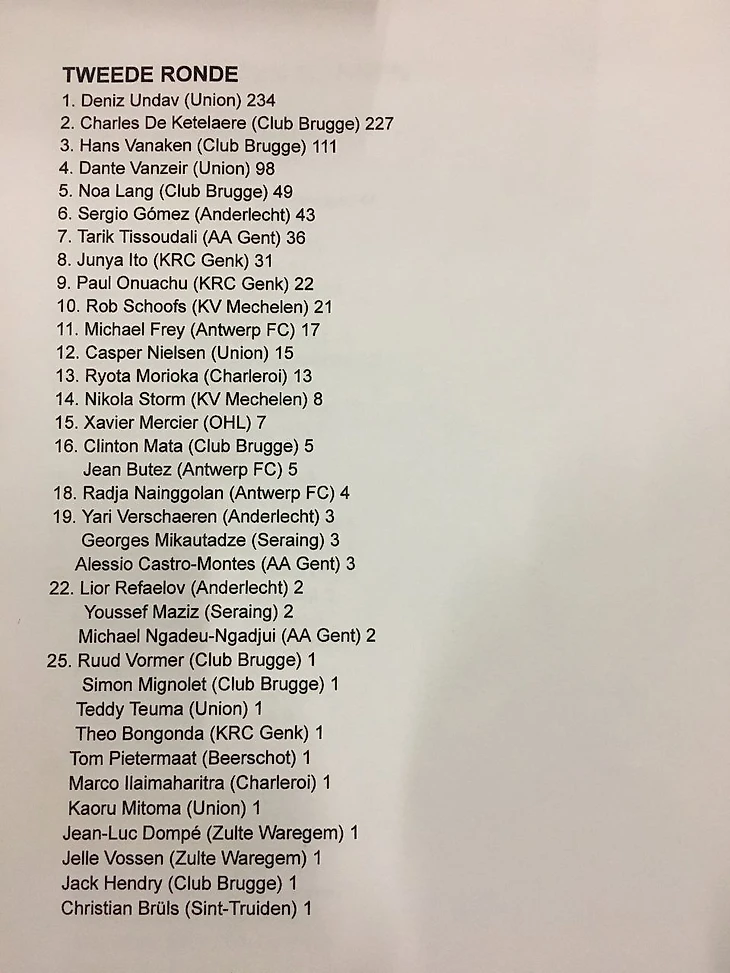 А еще в прошлом году Шарль стал вторым в списке самых молодых игроков, сыгравших 100 матчей за «Брюгге» (20 лет, 9 месяцев и 13 дней), уступив только Марку Дегризу. Бесспорный победитель – только взгляните на отрыв по баллам!