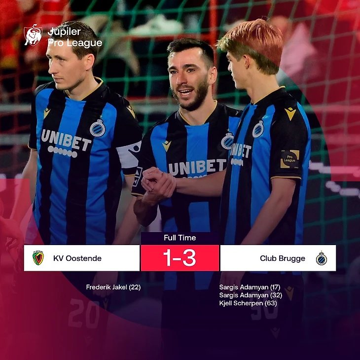 Здесь исход тоже был предсказуемым, но без оплошностей вратаря «Остенде» победа «Брюгге», возможно, была бы не такой уверенной. Кьелл Схерпен допустил две результативных ошибки, а потом еще нелепо пропустил между ног от Скова Ольсена с острого угла – Opta, кстати, считает, что это автогол, потому что мяч отскочил в сетку от ноги Схерпена.