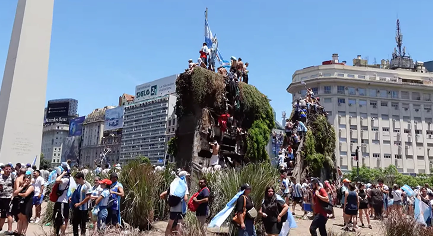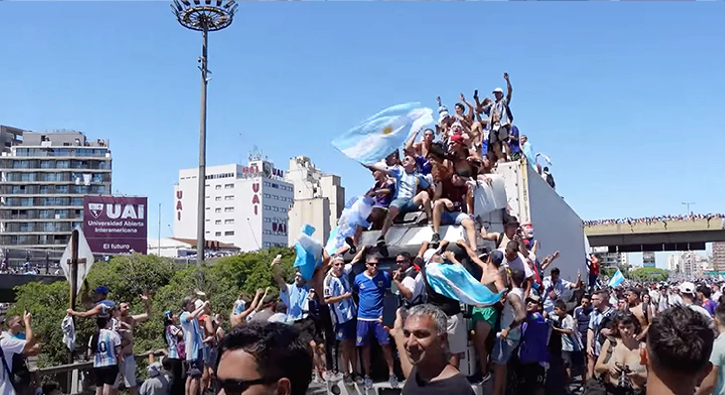 Финал мы посмотрели в доме Диего Марадоны — об этом блог «Фут Тур Рамы» уже рассказывал. А вот как мы ждали чемпионского автобуса в центре Буэнос-Айреса!