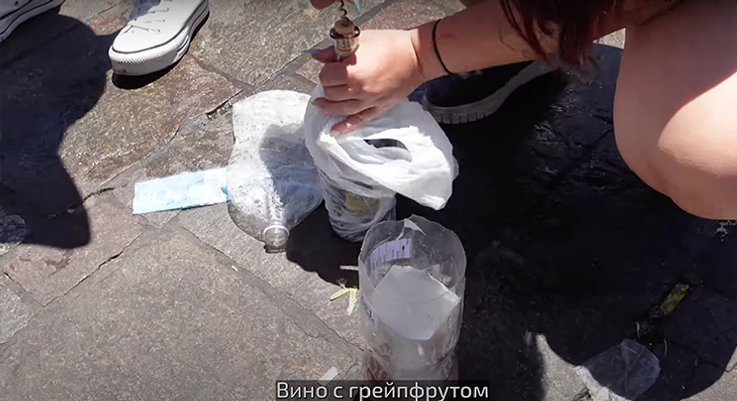 С балконов летят бутылки воды: пить хочется люто. А обратно — пустые сосуды, чтобы жители домов наполнили и вернули вниз.