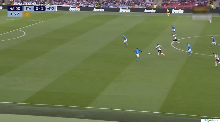 Во второй половине тайма игра пошла более вязкая. Ну понятно, Италии очень хотелось отыграться, а Аргентине нужно было внимательнее обороняться и не дать сравнять счёт "в раздевалку".