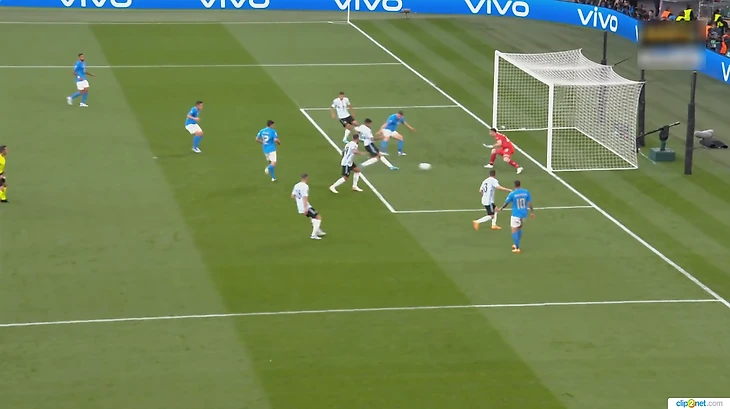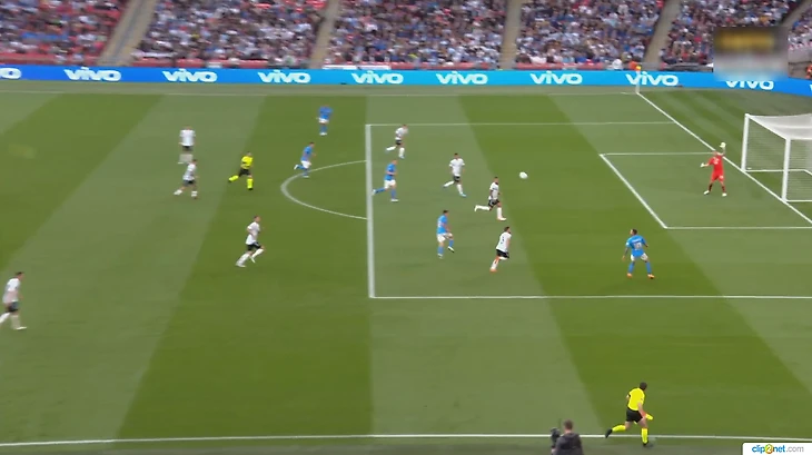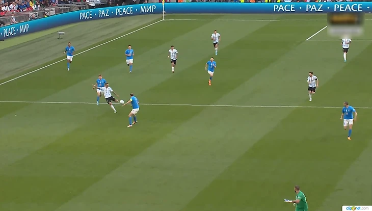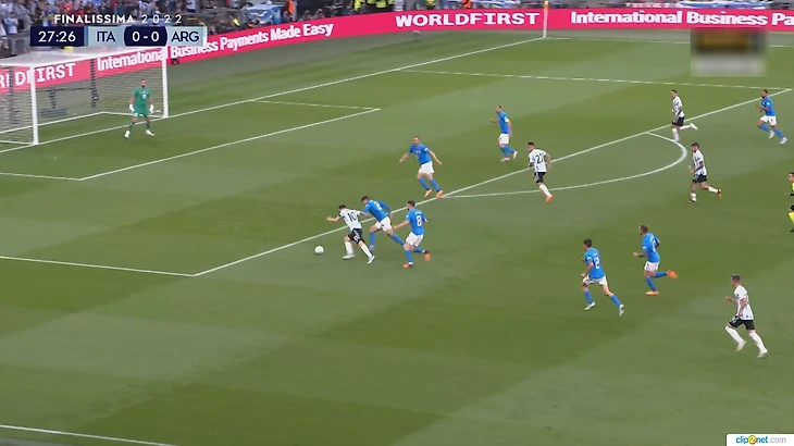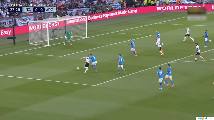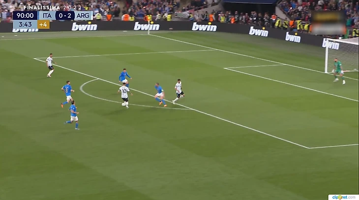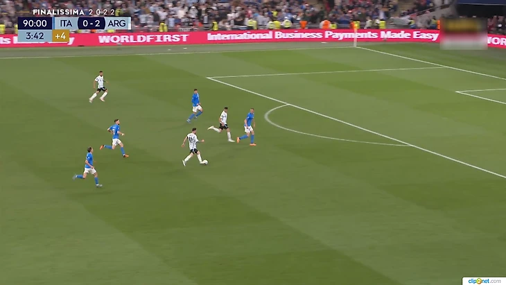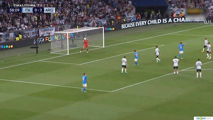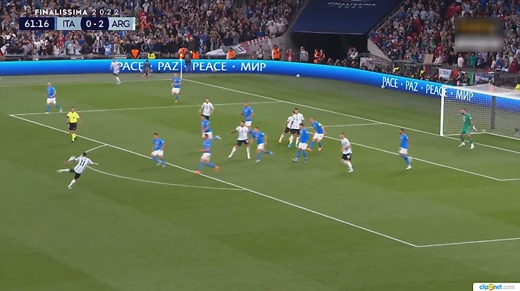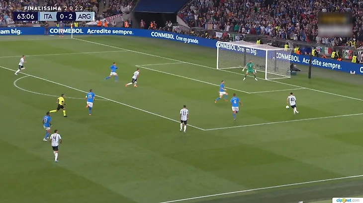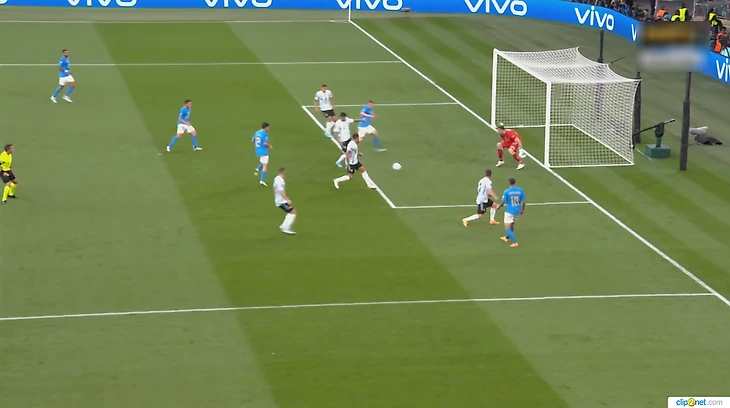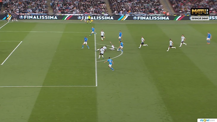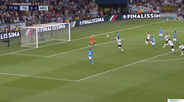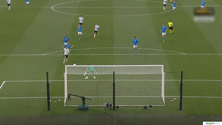 На 69-02 Мануэль Локателли послал мяч в аут. После выброса из аута Аргентина сделала 14 точных передач до Эми Мартинеса и 27 после его касания. И до получения штрафного на 71-02, который бело-голубые пробили выше ворот соперника - Италия не владела мячом ни секунды! Ровно 2 минуты чистого времени и 41 безошибочная передача. И что-то мне это напомнило... Ну да, конечно же... тот самый гол на ЧМ-2006 -