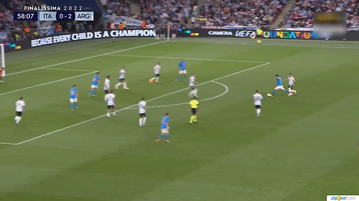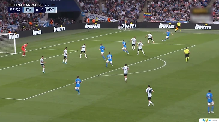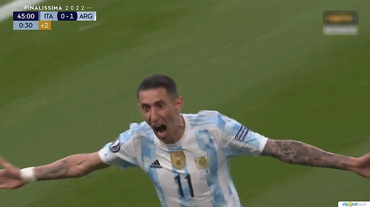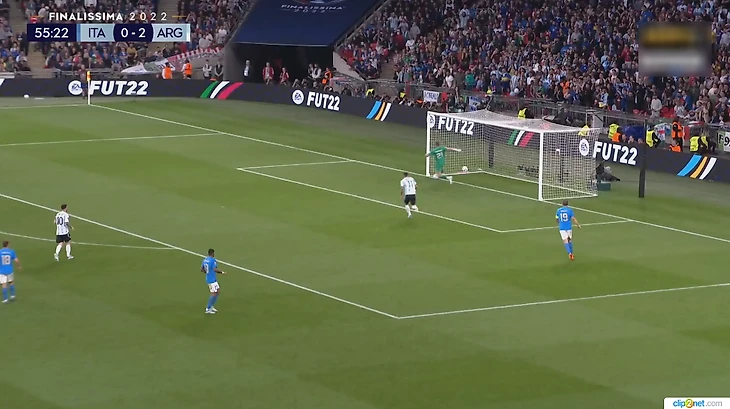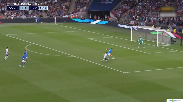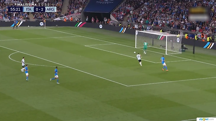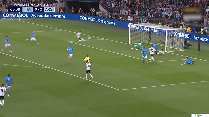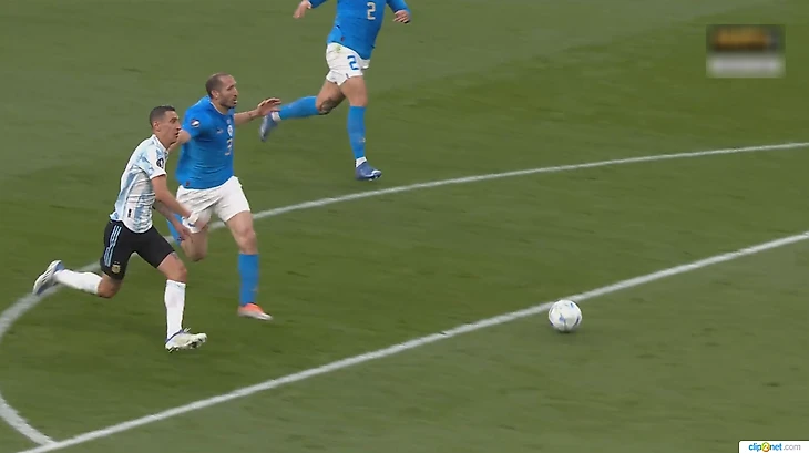 А и второй забитый мяч Аргентины не заставил себя очень долго ждать 🙂 Леонардо Бонуччи проиграл борьбу Лаутаро, Кьеллини не добежал до Анхеля - и гол! И 0-2 уже!!
