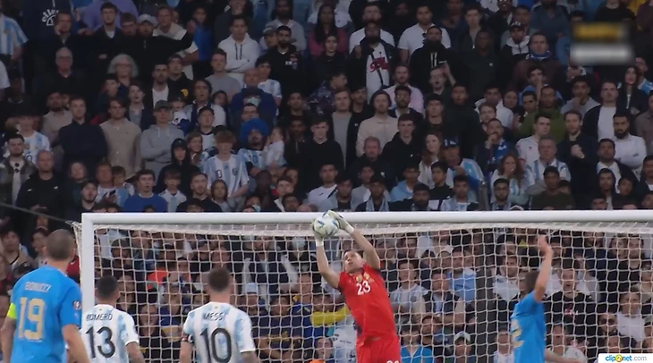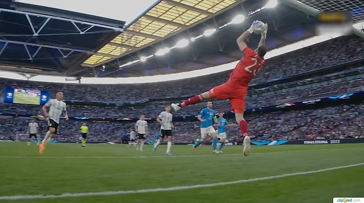 Но к чести Италии обязательно скажу, что и при счёте 0-2 она не собиралась сдаваться! На 58-й минуте Мануэль Ладзари навесил справа, отскок, подбор Италии, навес слева от Эмерсона, опять подбор за Италией и хороший удар Локателли! Но рикошет, который часто вредит голкиперам, и тут сыграл за Аргентину - мяч уменьшил скорость, но почти не изменил направления. В невысоком прыжке Эми Мартинес уверенно забрал его себе.