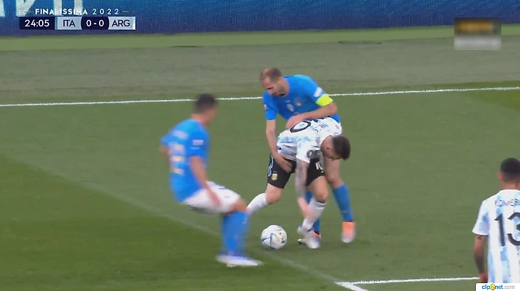 В одном из эпизодов Кьеллини даже в борьбе "приобнял" Месси :) Джорджо видимо был настроен даже поговорить "за жизнь", но не тут-то было! :) Свисток, Лео моментально разыгрывает мяч и погнали вперёд!