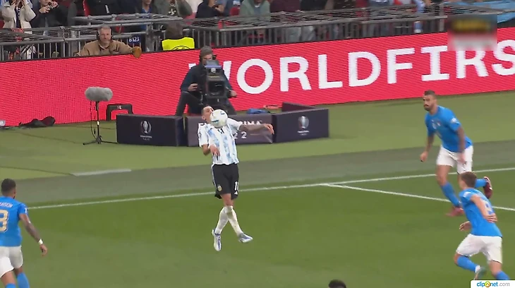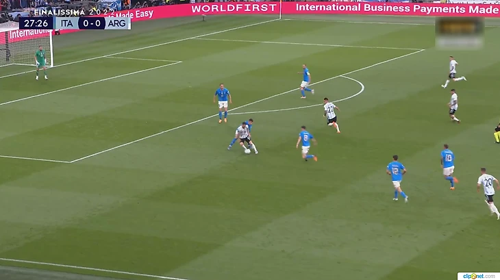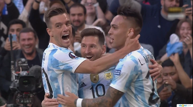 Просто уничтожала своего соперника Аргентина в первой половине второго тайма, атака следовала за атакой! Ди Мария, Месси, Лаутаро и Молина запрессинговали защиту соперника, Лео выбивает мяч у Эмерсона, забегает в штрафную, прострел на Ло Чельсо, но тот не попадает!