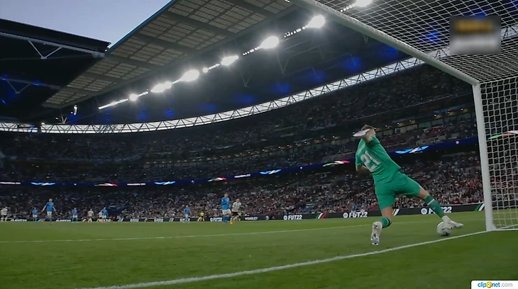 Но на другом повторе стало понятно, что это просто такой эффект видеосъёмки, а на самом деле угол был довольно острый и замкнуть в ворота было достаточно сложно. У Джованни не получилось. А кое-кто, вероятно бы и забил.