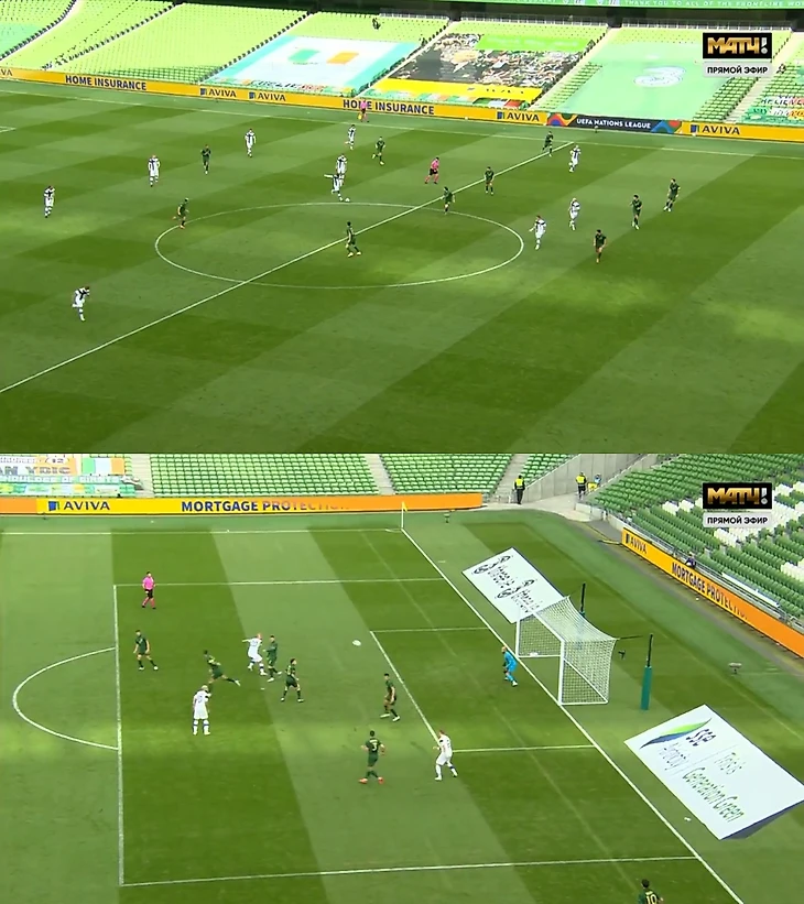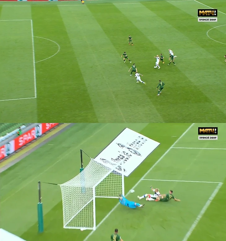 5-3-2 работали безотказно. В створ ирландцы в первом тайме били только совсем издали, да и во втором число таких эпизодов не увеличилось всерьез. Виной этому было еще и расположение полузащитников ирландцев. Они действовали и слишком широко, и в то же время слишком близко к центральному кругу. Они и назад не успевали, и в то же время атаку не поддерживали. Отсутствовал плеймейкер, это была тройка «шестых номеров», которая не создавала связи с атакой. С такими каши не сваришь. Все же когда при владении мячом нет одного целенаправленного креативщика, но есть двое как бы созидателей в схеме 4-3-3… Когда в последний раз у Ирландии был отличный разыгрывающий в центре поля? Дэмьен Дафф?